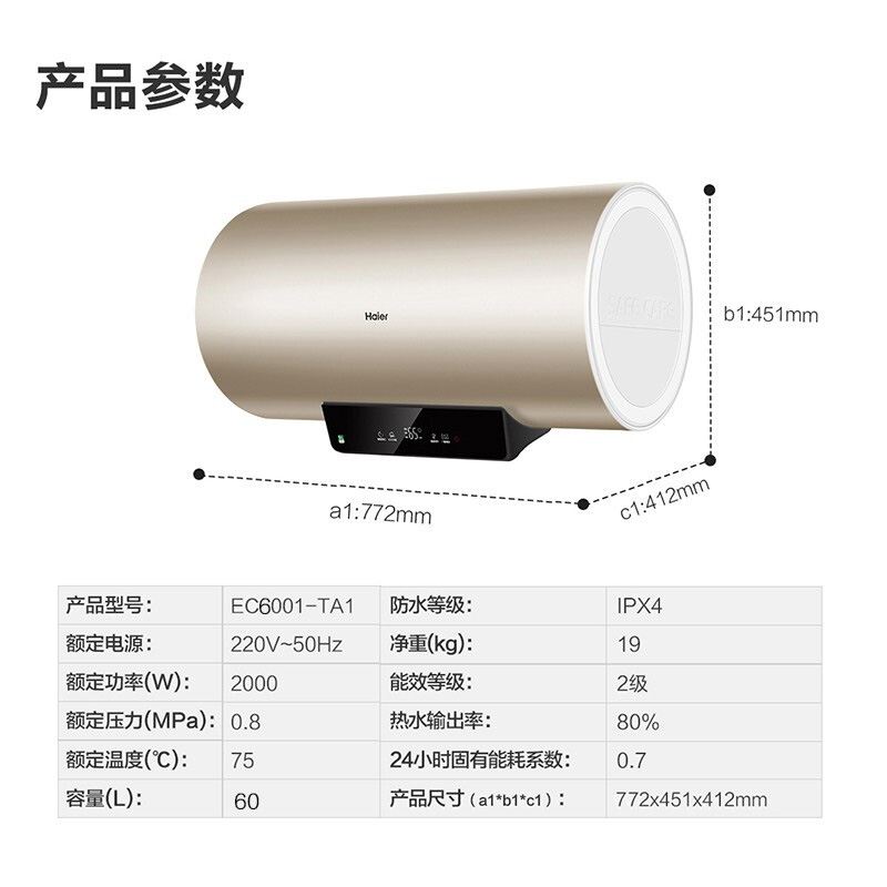 Haier/海尔 EC5001-TA1预约智能速热安装防电墙储水式【炫彩机身/金色】 |