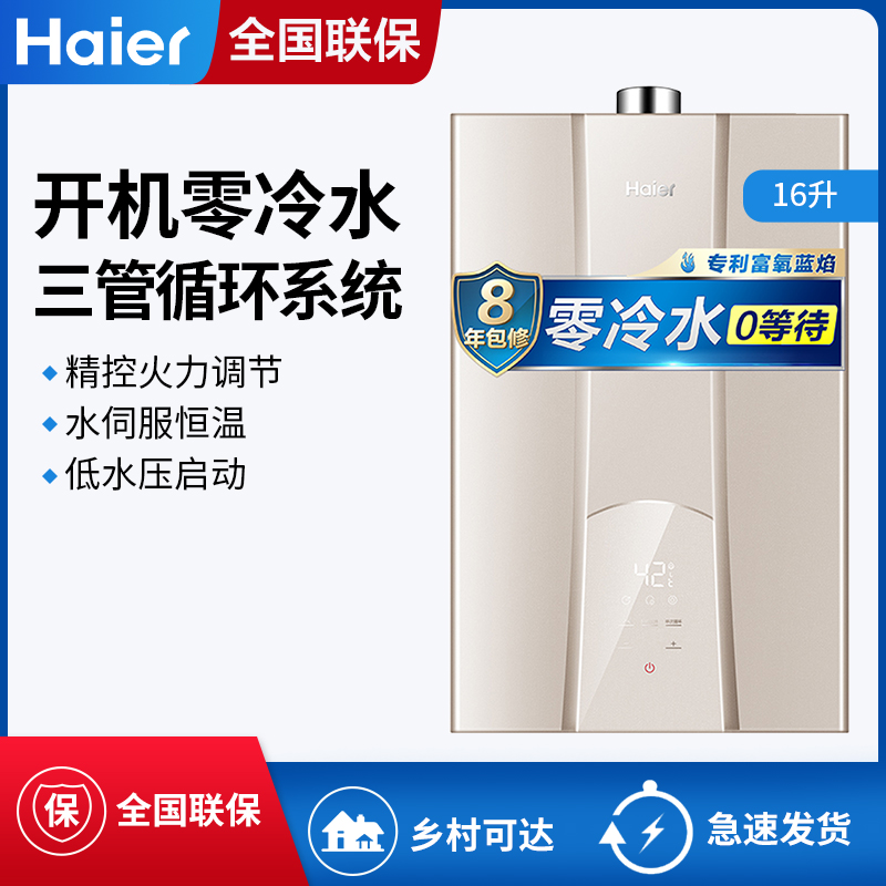 Haier/海尔 JSQ31-16R5BW 零冷水 三管大水量 双感恒温 低压启动 天然气【不锈钢/金色】 |