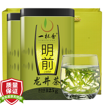 一杯香新茶龙井茶2盒共250g礼盒装茶叶明前绿茶春茶浓香型散装 |