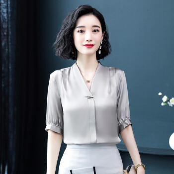凝拉衬衫女短袖夏季新款韩版仿真丝上衣时尚大码洋气V领雪纺职业装衫打底小衫衬衣潮 白色 2XL(建议125-140斤) |
