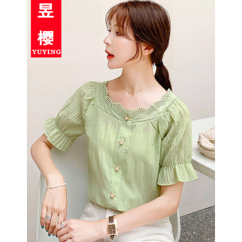 昱樱衬衫女时尚雪纺衫女夏装新款小个子学生泡泡袖韩版潮流短袖t恤短衣服小衫上衣欧洲站衬衣女 浅绿色 此码勿拍.请拍自身对应码数 |