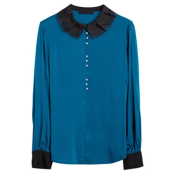 南极人 长袖衬衫女夏季新款女装时尚撞色绣花娃娃领衬衣原创设计纯色打底小衫上衣潮 N4-NRB42-5269-蓝色 M |