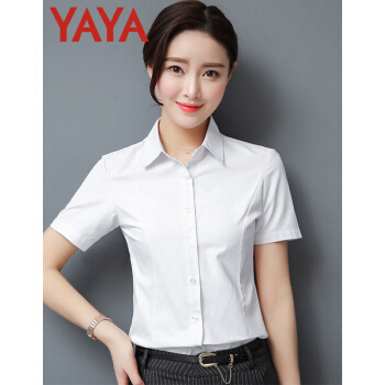 鸭鸭服饰(yaya)衬衫女夏季新款女装短袖职业装女士上衣韩范百搭修身纯色衬衣 白色 请选择正确尺码 |