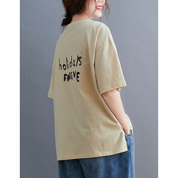 婪澈T恤女女装夏季新款文艺棉圆领印花短袖t恤女宽松大码休闲上衣女 深灰色 请拍正确尺码 |
