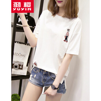 羽樱 短袖t恤女夏装新款大码女装宽松韩版学生棉T恤半袖上衣服女 7338 白色 L |