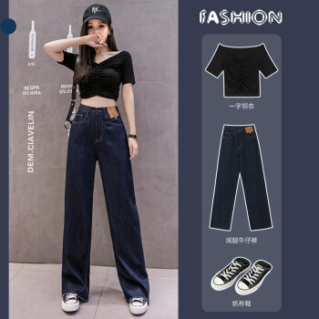 南极人 牛仔裤女夏季新款阔腿裤韩版时尚百搭宽松显瘦高腰垂感拖地裤子 N7-FF2D11-525-蓝色 请拍正确尺码 |