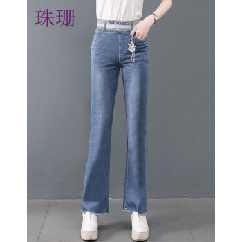 珠珊高腰牛仔裤女春秋新款裤子女装阔腿裤拖地裤女长裤直筒裤大码女装垂感休闲裤女 109-蓝色 29码(建议110-120斤左右) |