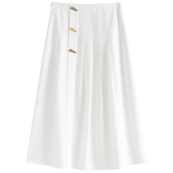 范思蓝恩 夏季新款中长款高腰半身裙设计感小众气质压褶裙子女 白色 S |