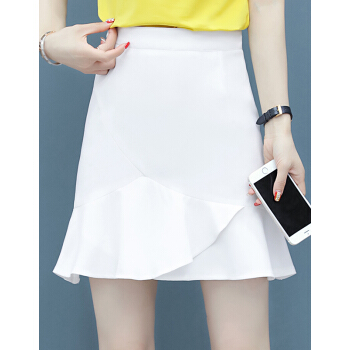 芳帛a字半身裙女夏季新款高腰显瘦不规则短裙子百搭韩版荷叶边包臀鱼尾裙 白色 S |