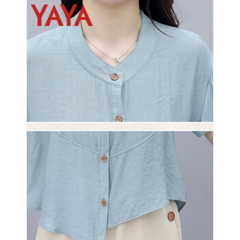鸭鸭服饰yaya休闲裤女女装夏季新款棉麻套装时尚洋气减龄显瘦文艺气质复古阔腿裤女两件套装女 蓝衣米裤 请选择正确尺码 |