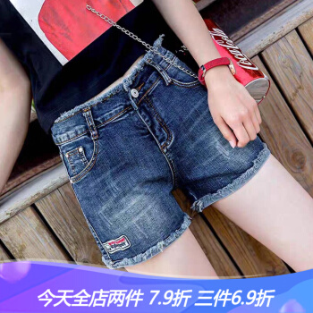 沫澜仟衣牛仔短裤女夏季新款韩版高腰显瘦休闲百搭裤子女宽松时尚毛边a字热裤 深蓝 26码 |