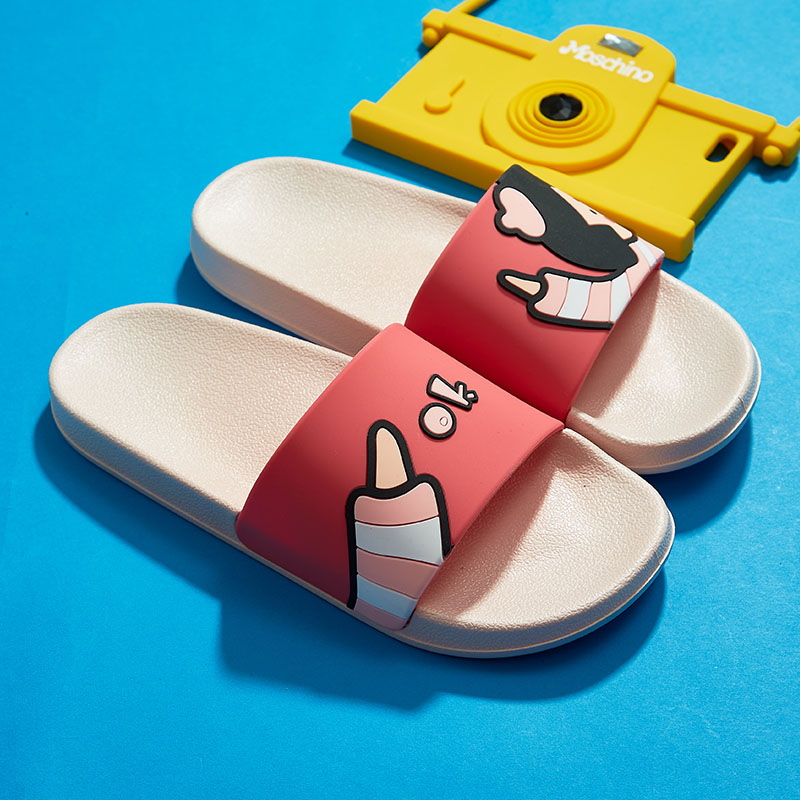 时尚卡通可爱趣味招手蘑菇头厚底舒适情侣凉拖鞋【pvc/西瓜红】 |