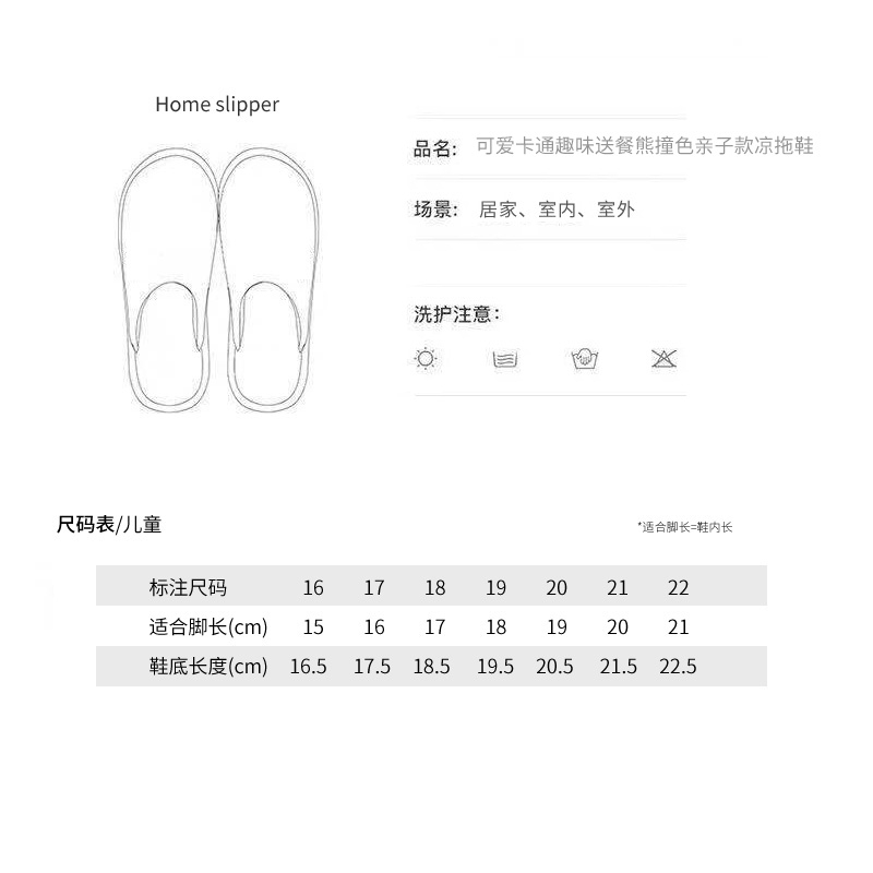 可爱卡通趣味送餐熊撞色亲子款凉拖鞋【橡塑/浅绿/米色【童鞋】】 |