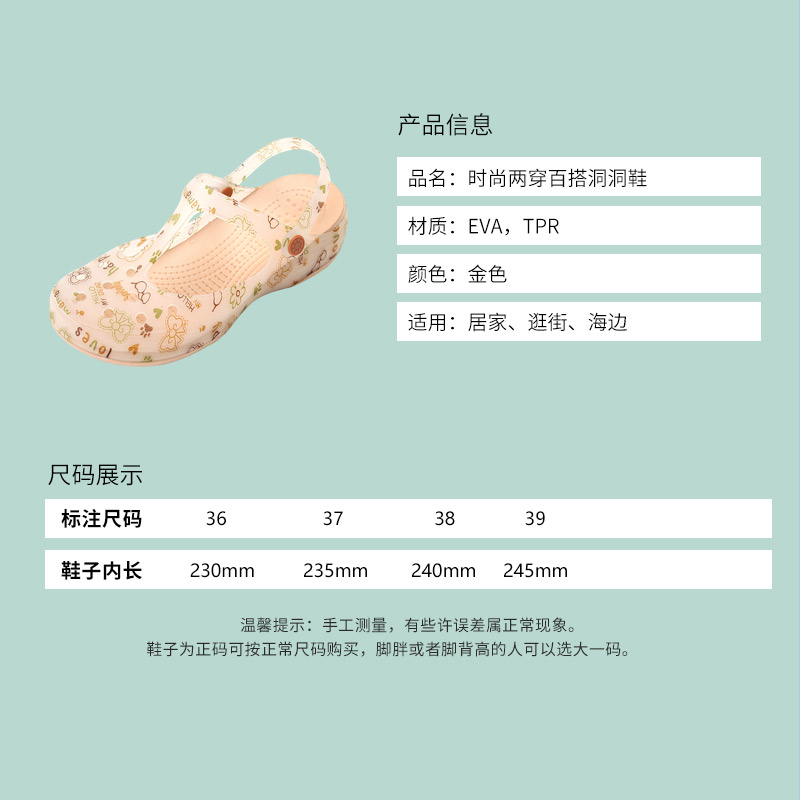 【超值单品】两双 百搭舒适休闲滩凉洞洞鞋【底:EVA,面:TPR/玫瑰金】 |