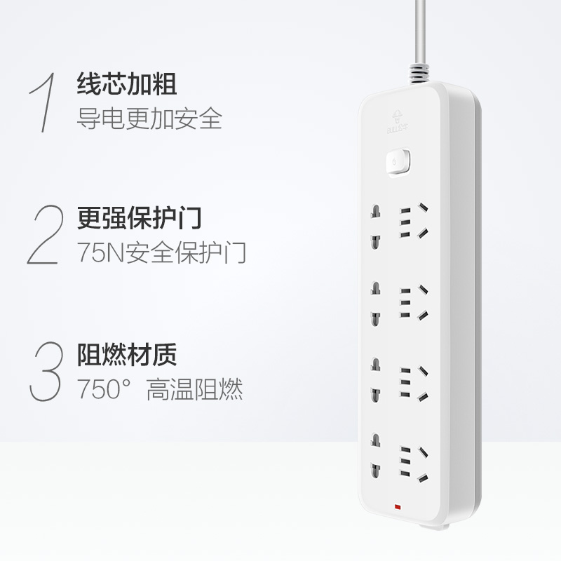 【超值单品】公牛插座GN-B5440插排8插位接线板排插电插板长线拖线板多孔通用【PP/白色】 |