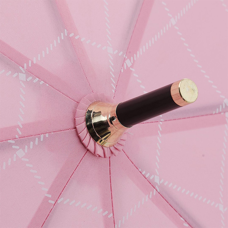 粉色长柄自动雨伞【木柄 210T碰击布 纤维骨/粉色】 |
