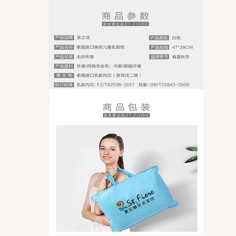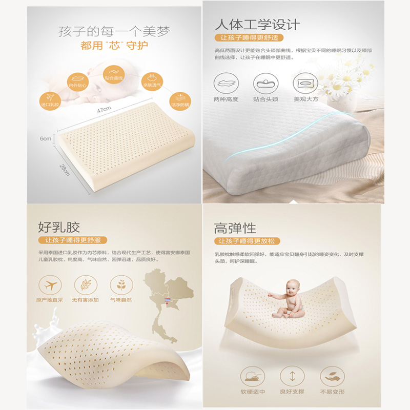 泰国进口瑞安儿童乳胶枕(单只装)【面料:纯棉夹丝布;填充:乳胶/白】 |