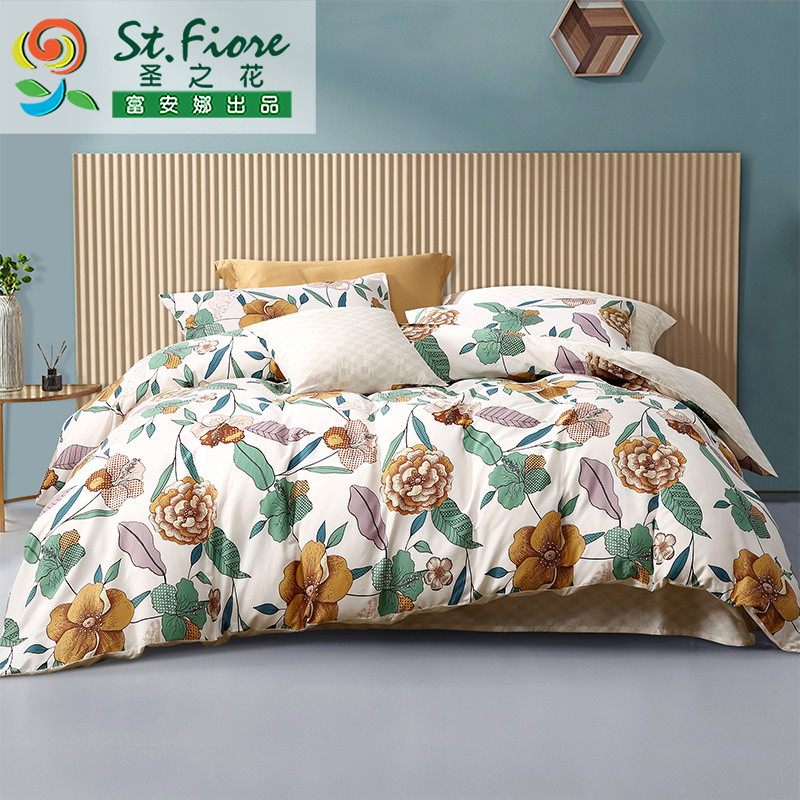 花枝墨染 床单四件套(被套1件床单1件枕套2件)(适合1.5米床)【纯棉/黄】 |
