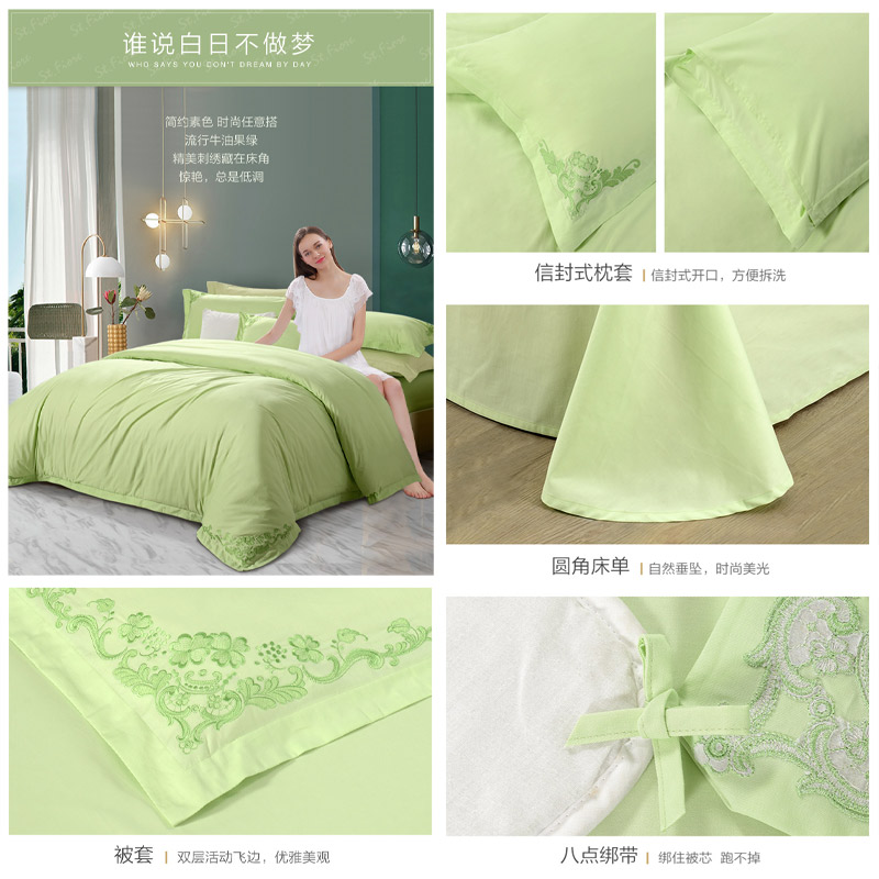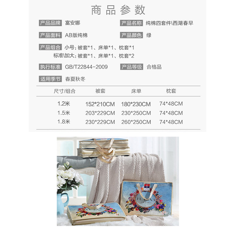 西湖早春 床单四件套(被套1件床单1件枕套2件)(适合1.5米床)【纯棉/绿】 |