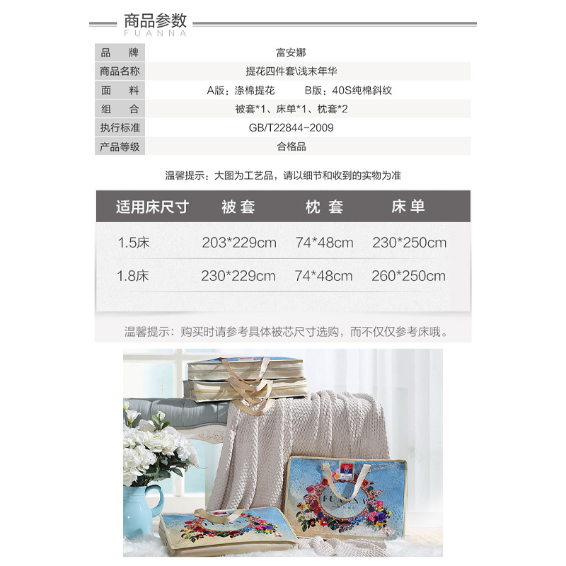 浅末年华 床单四件套(被套1件床单1件枕套2件)(适合1.8米床)【A版:涤棉提花;B版:纯棉/咖啡】 |