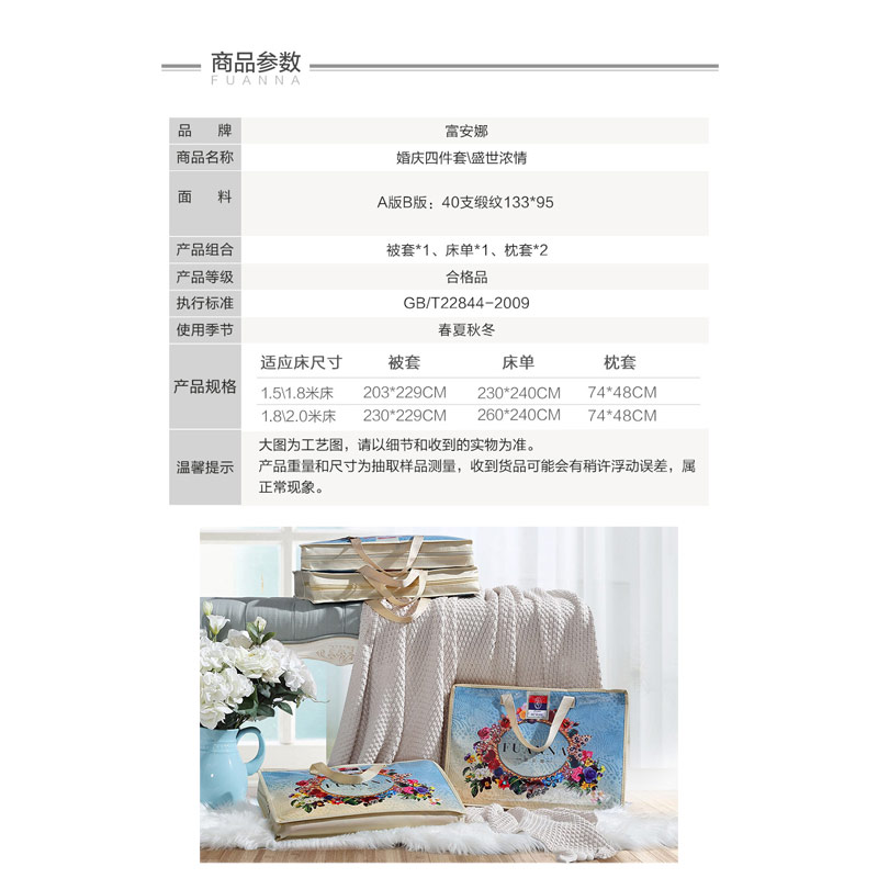 盛世浓情 床单四件套(被套1件床单1件枕套2件)(适合1.8米床)【纯棉缎纹/红】 |