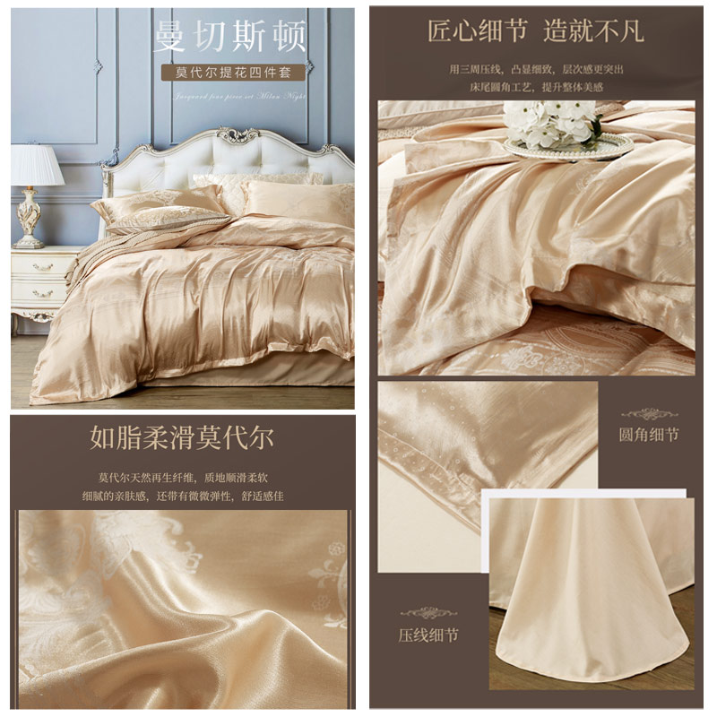 圣菲南尔 床单四件套(被套1件床单1件枕套2件)(适合1.5米床)【A版:涤莫代尔提花;B版:纯棉/黄】 |