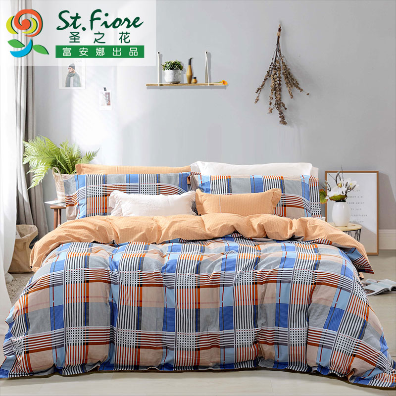蓝调轻吟 床单四件套(被套1件床单1件枕套2件)(适合1.5米床)【纯棉磨毛/蓝】 |