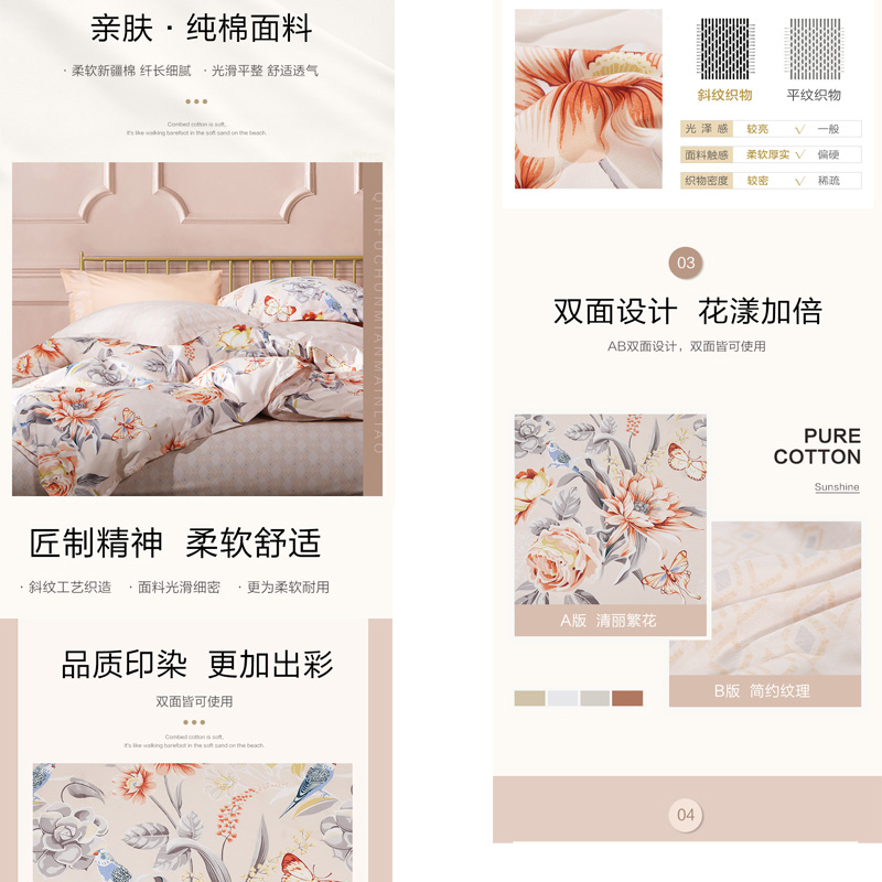 蝶梦花溪 床单四件套(被套1件床单1件枕套2件)(适合1.8米床)【纯棉/橙色】 |