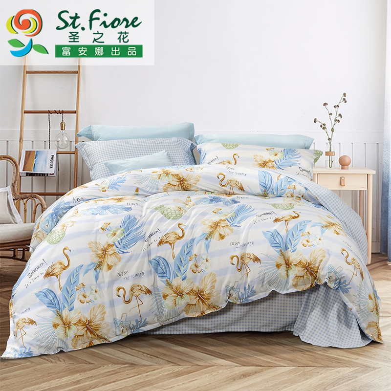 丛林夏梦 床单四件套(被套1件床单1件枕套2件)(适合1.8米床)【纯棉/蓝】 |
