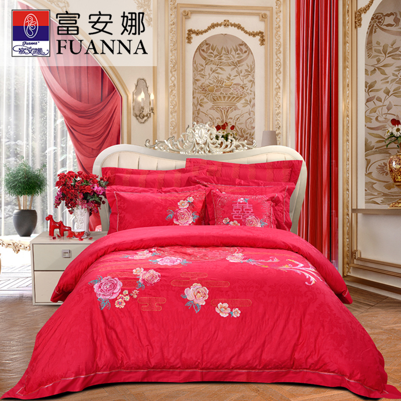 花好月圆 床单八件套(被套1件床单1件枕套4件方抱芯1件方抱套1件)(适合1.5米床)【纯棉提花/红】 |