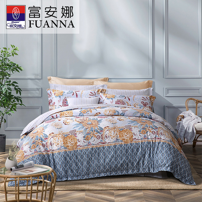 一眼芳华 床单四件套(被套1件床单1件枕套2件)(适合1.5米床)【纯棉/蓝】 |