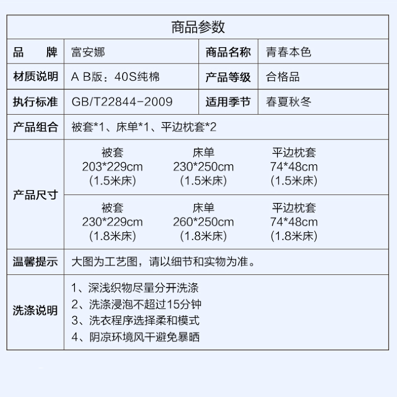 青春本色床单四件套(被套1件床单1件枕套2件)(适合1.5米床)【纯棉/粉】 |