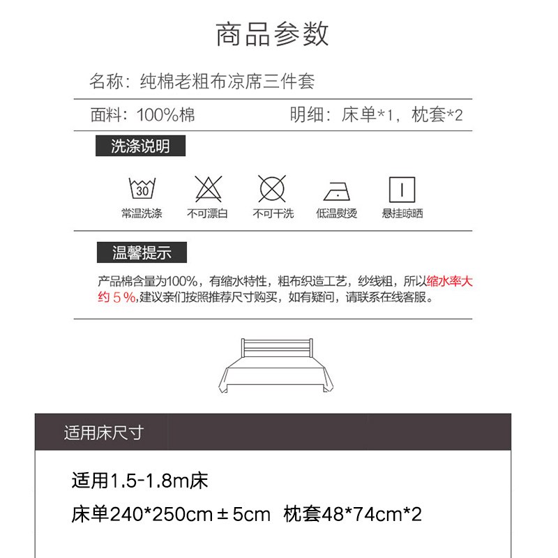 全棉麻空调软凉席老粗布床单三件套【棉/色彩】 |