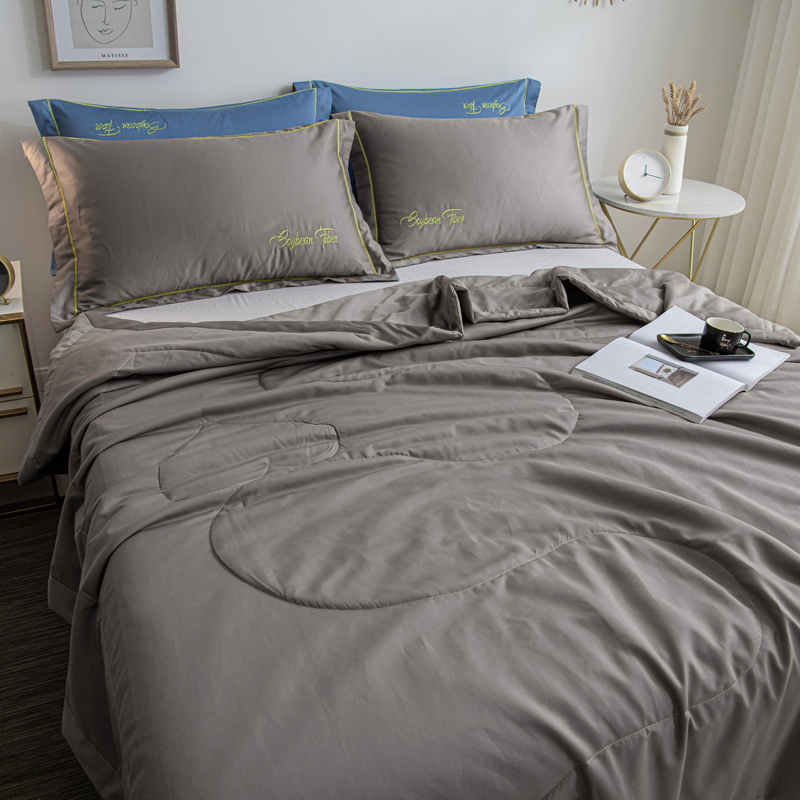 纯色刺绣水洗冰丝大豆纤维夏被【水洗冰丝(聚酯纤维)填充大豆纤维/太空灰】 |