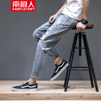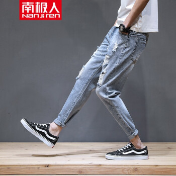 【两条装】南极人牛仔裤男夏季新款修身九分裤男薄款港风休闲裤男哈伦运动裤子男士潮流韩版破洞牛仔裤男裤 819蓝色+602灰色 31 |