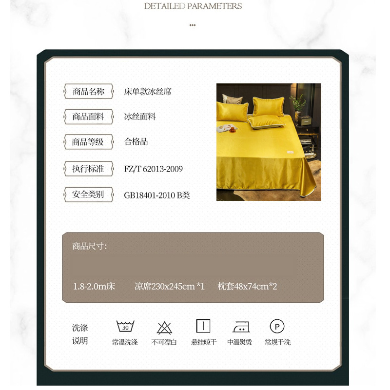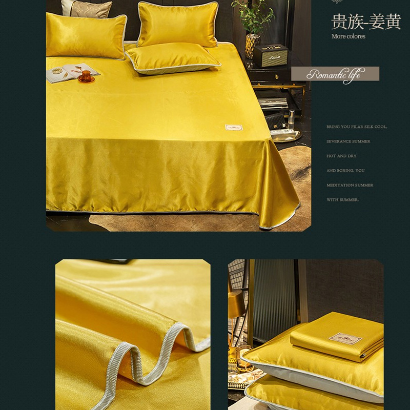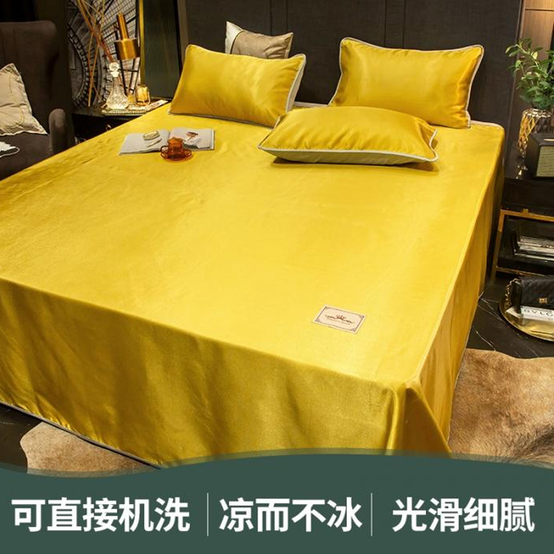 无印纯色床单款冰丝凉席三件套可机洗【冰丝面料(聚酯纤维)/贵族-姜黄】 |