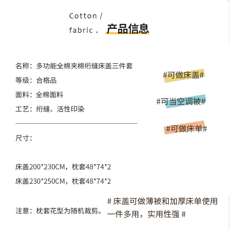 【三层复合】全棉夹棉绗缝床盖三件套【全棉/清新草莓-兰】 |