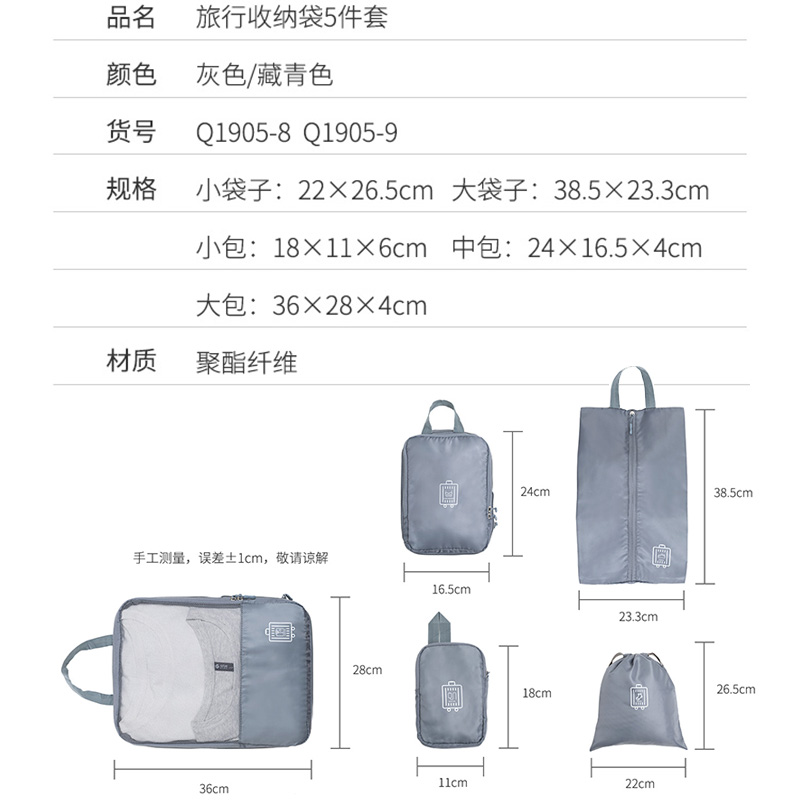 旅行收纳袋5件套【聚酯纤维/图片色】 |