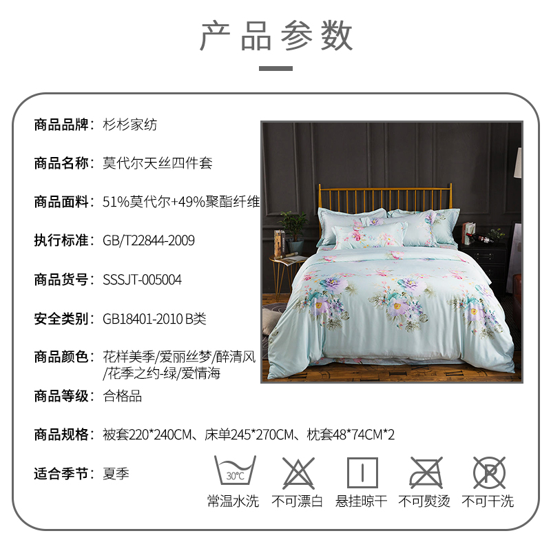 莫代尔天丝四件套【51%莫代尔+49%聚酯纤维/被套220*240床单245*270枕套48*74*2】 |