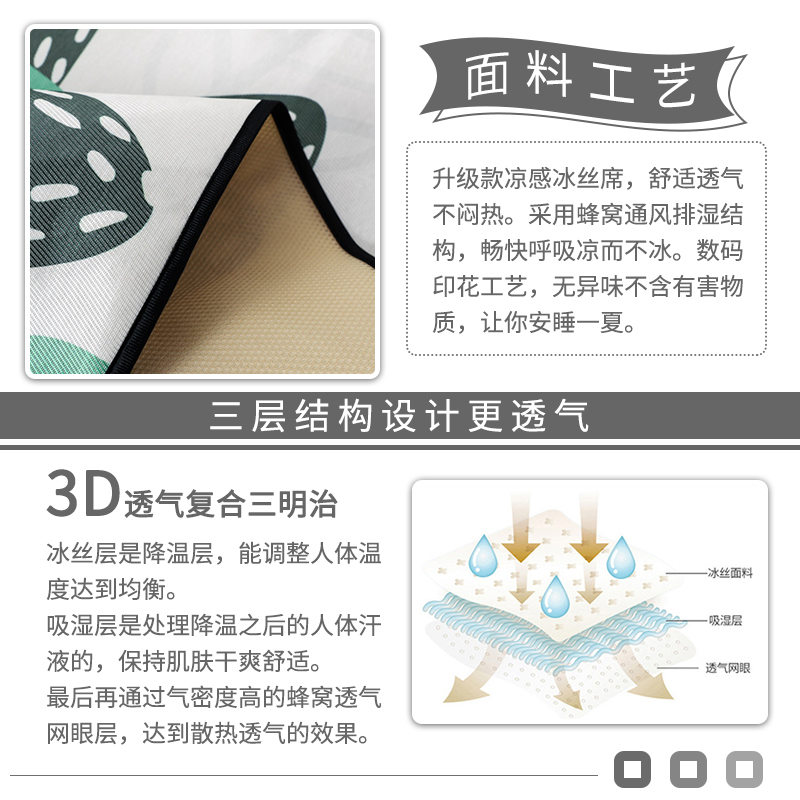 大版冰丝席凉席三件套【聚酯纤维/萌宠恐龙】 |