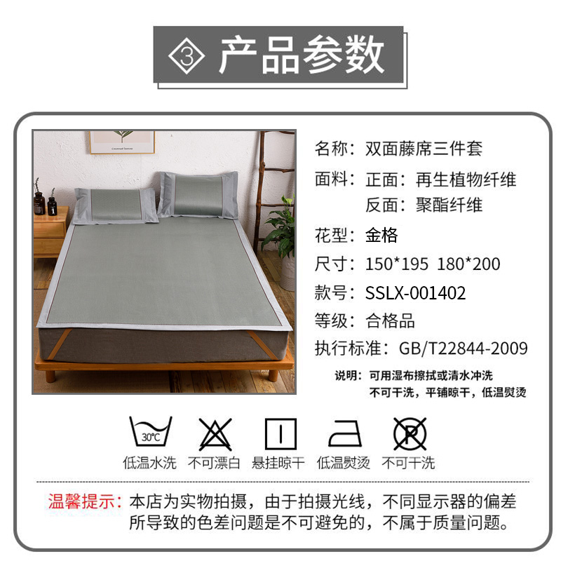 双面藤席三件套【正面:再生植物纤维反面:聚酯纤维/金格】 |