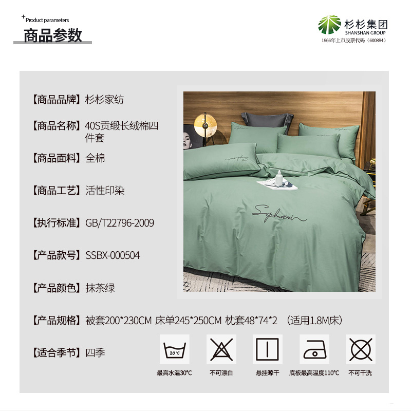 40s贡缎长绒棉四件套【全棉/抹茶绿】 |