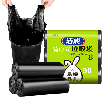 洁成加厚背心手提式垃圾袋90只 50cm*60cm*30只*3卷装 黑色大号家用办公塑料清洁袋 |
