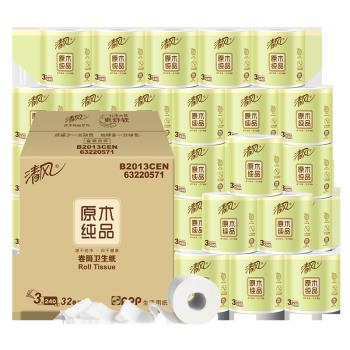 清风 卷纸卫生纸整箱32卷原木纯品3层240段卷筒纸27卷+5卷 纸巾手纸厕纸 |