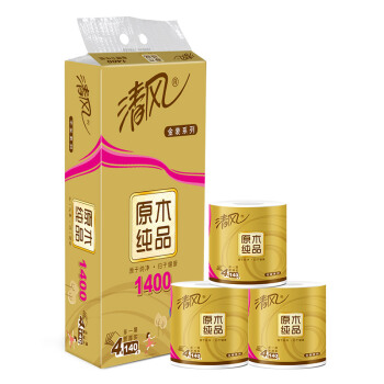 清风(APP)卷纸 原木纯品金装系列 4层加厚140克卫生纸巾10卷(母婴可用,柔软强韧 新老包装交替发货) |