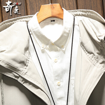 奇鹿 春秋新款连帽工装风衣男中长款夹克男复古街头宽松冲锋衣帅气大衣韩版潮流大码加厚夹棉多口袋青年外套 卡其色(不夹棉) XL(适合145-165斤) |