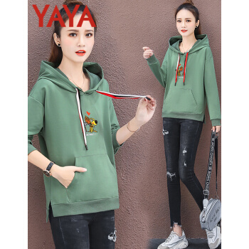 鸭鸭服饰yaya卫衣女韩版女装薄款长袖外套女上衣新款韩版宽松连帽衫秋装时 绿色 L |