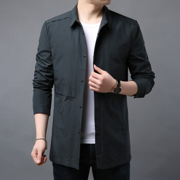 拉蒂奢品RATILUX品牌中长款风衣男韩版商务休闲男装春秋翻领帅气潮流百搭夹克秋季外套 灰色(春秋常规款) 175/L |