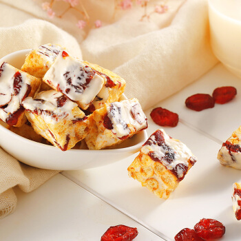百草味 早餐沙琪玛休闲零食蛋糕办公室 蔓越莓味牛轧奶芙160g/袋 |