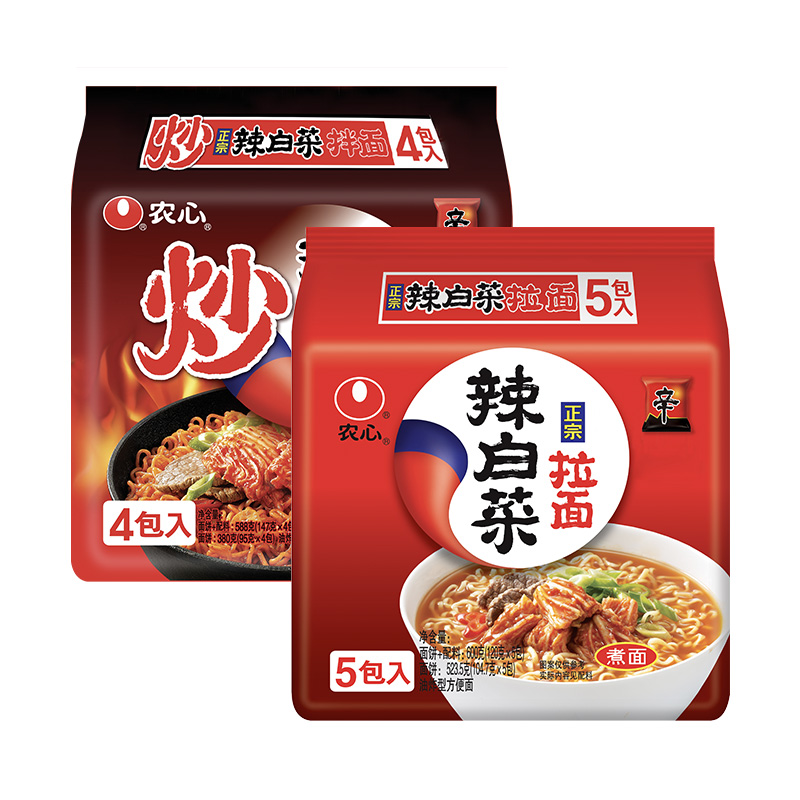 农心辣白菜拉面方便面&农心炒辣白菜拌面(含韩国切片泡菜)即食面 |